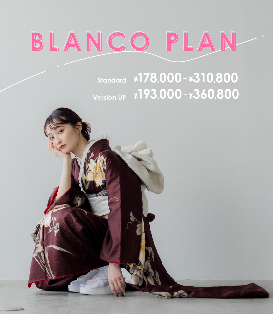 ◯BLANCO PLAN前撮り時と成人式当日の2回レンタルできるプランです。